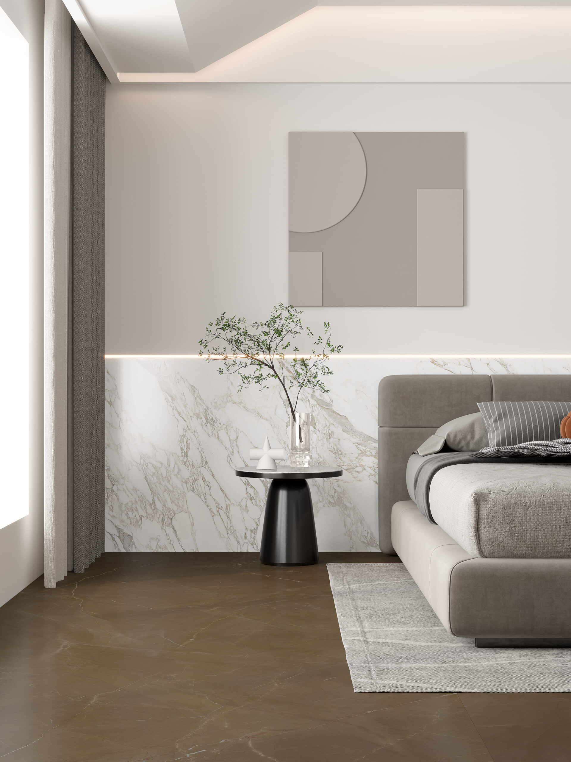Flooring & Walls: Large-format tiles create a seamless, expansive look in living rooms or lobbies.