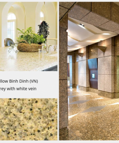 BD Yellow granite is a natural granite stone, which is the product of the process of depositing lava under the crust of the earth for a long time, thus forming the BD yellow granite Stone. BD Yellow granite is a natural granite that has the characteristics of durability, strength, hardness, gloss, high homogeneity in color. Binh Dinh gold granite is commonly used for works that are subject to many external forces such as: façades, countertops, stairs, floors, …