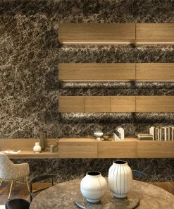 Dark Emperador; A lattice of gorgeous gold swathes the dark brown marble, lending a rich ambience to the interiors. The Dark Emperador marble is quite versatile and can be used for flooring, wall cladding, countertops and more.
