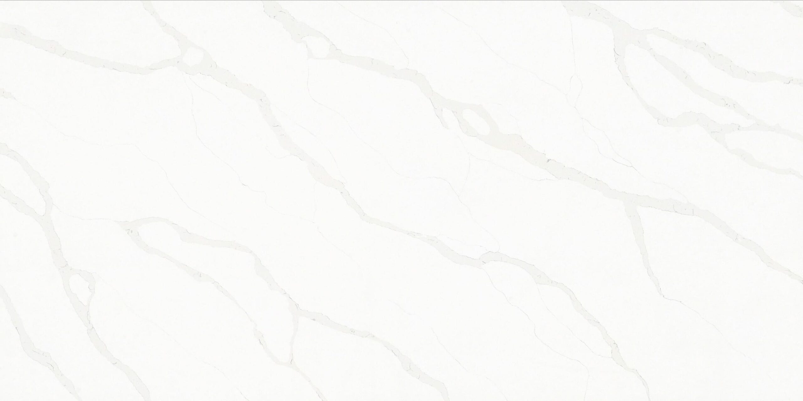 - Veining: The surface is traversed by soft, fluid grey veins. The veining pattern is continuous and organic, featuring a mix of thicker flowing lines and delicate branching, mimicking the elegant structure of classic Italian marble.