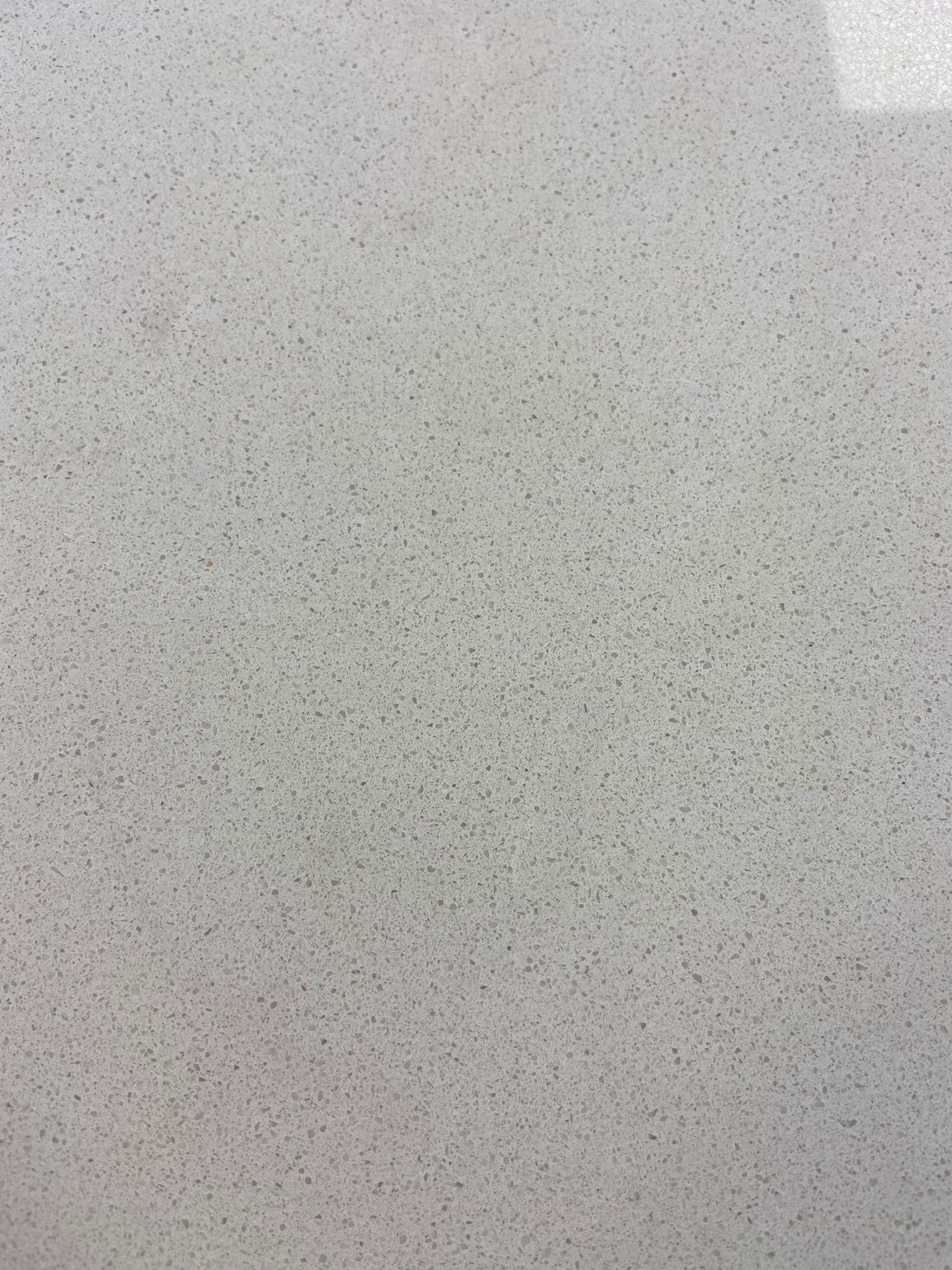 - Pattern: A fine, sand-like grain (aggregate) runs uniformly throughout the slab. This subtle texture adds depth without overpowering the design, mimicking the look of natural limestone or white granite.