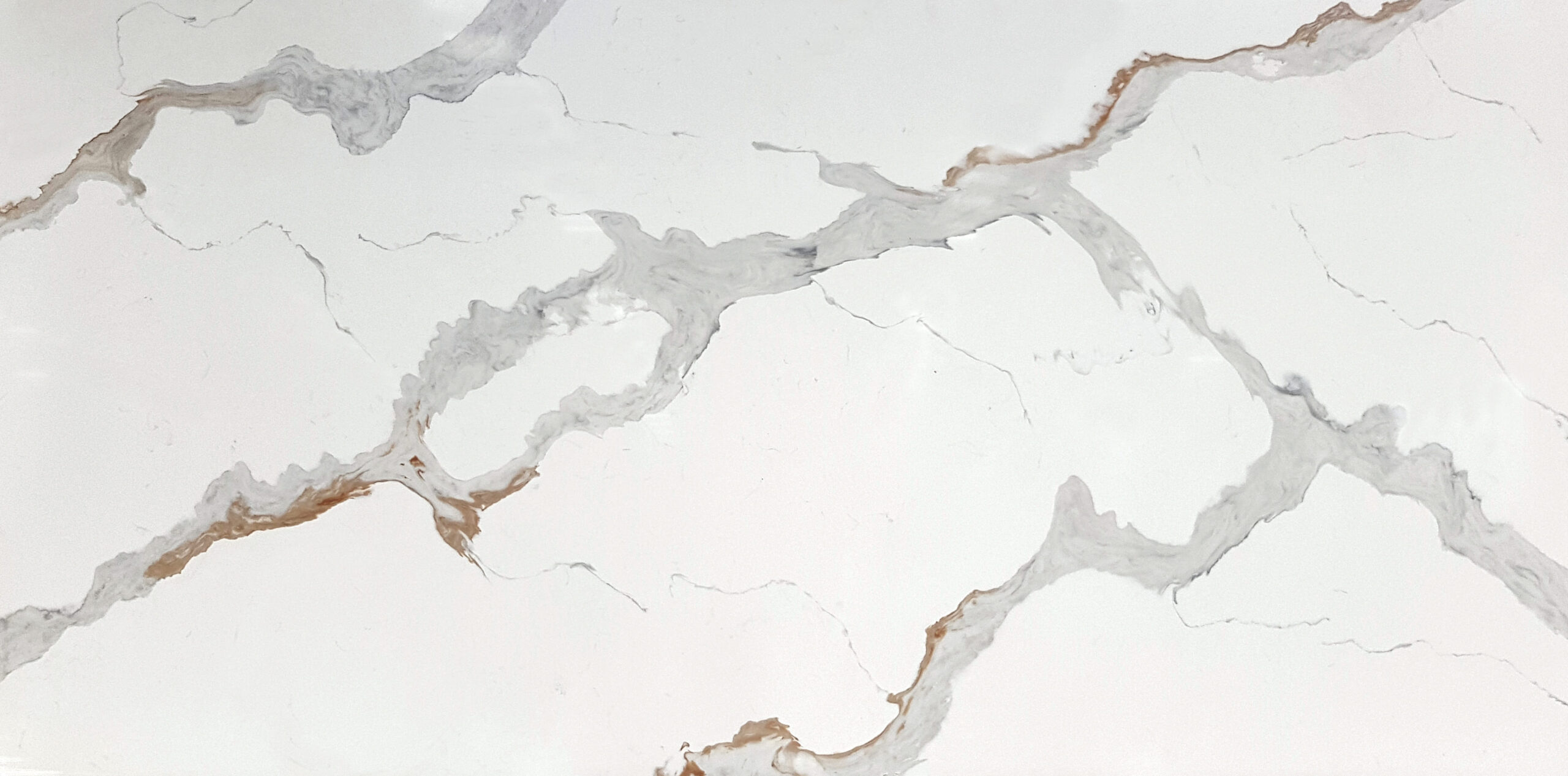 - Veining: The surface is dominated by thick, powerful veins that flow across the slab. Unlike standard grey marble, these veins are edged and accented with rich tones of rust, copper, and antique gold.