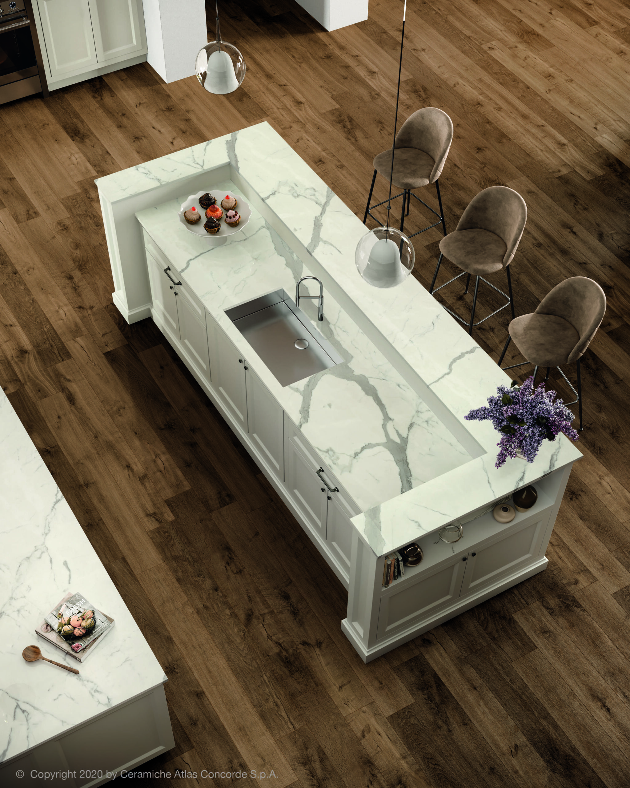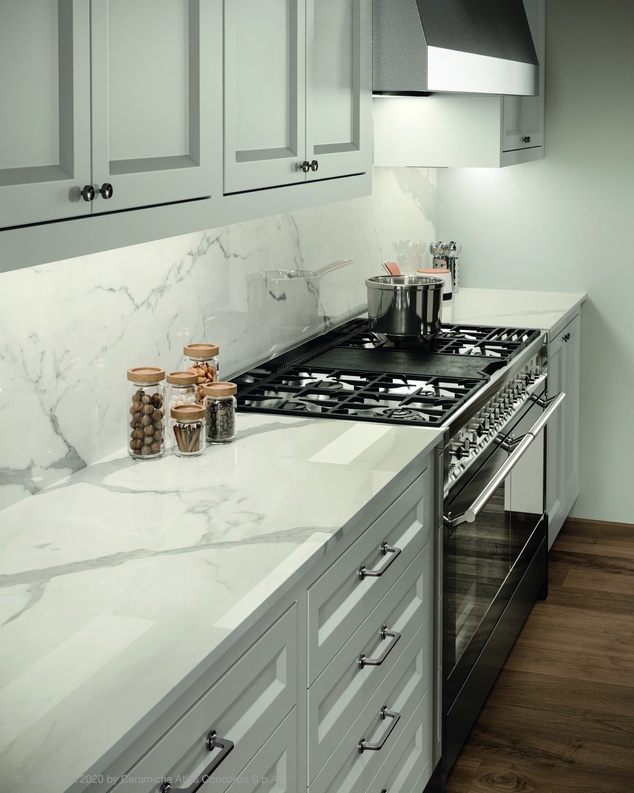 The Pinnacle of Aesthetic Luxury Statuario Supremo is a masterpiece of porcelain design, meticulously crafted to replicate the prestigious Statuario marble from the Carrara region of Italy. Its signature look is defined by a crisp, luminous white base contrasted by dynamic, sweeping grey veining. These veins vary from delicate wisps to bold, dramatic strokes, ensuring that every slab feels like a unique piece of art.